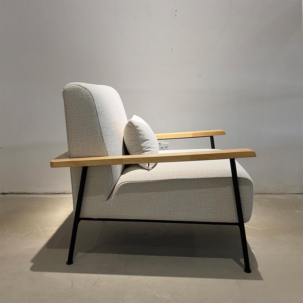 - Solid Wood Armrest With Black Metal Frame